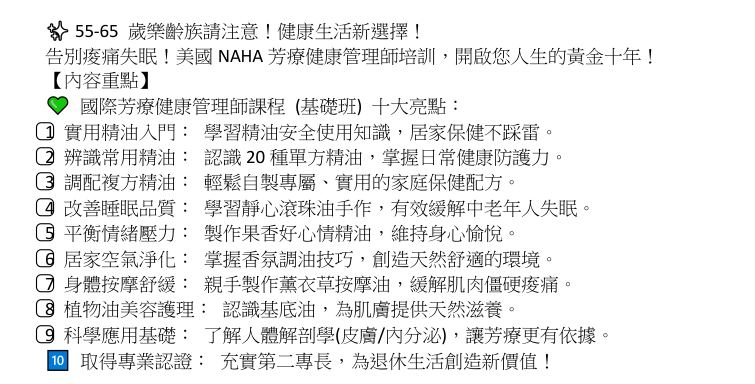 美國NAHA芳療健康保健師 基礎班