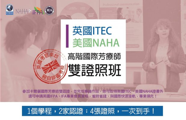 *英國國際專業芳療師聯盟,為英國規模最大的專業芳香療法協會,成立於2002年4月1日 *IFPA芳療師認證課程嚴謹,經過課程研習及認證考試後,便可取得英國IFPA高階專業芳療師會員證書。擁有國際證照,對於未來從事芳療師、講師無疑是絕佳的利器!